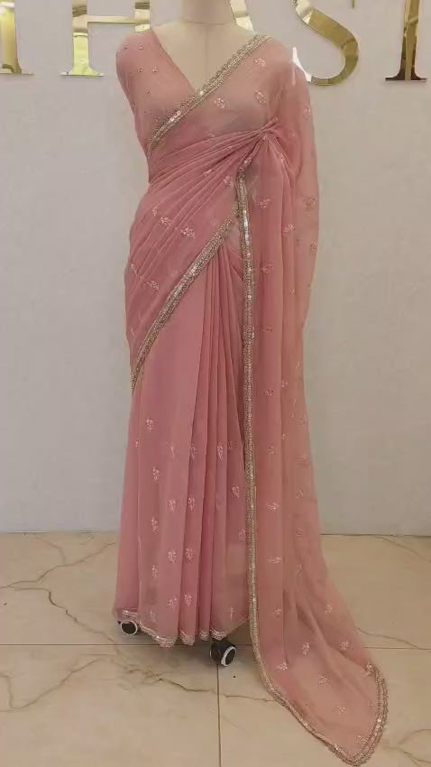 Crush Organza saree with embroidery work and handwork. With worked blouse piece.