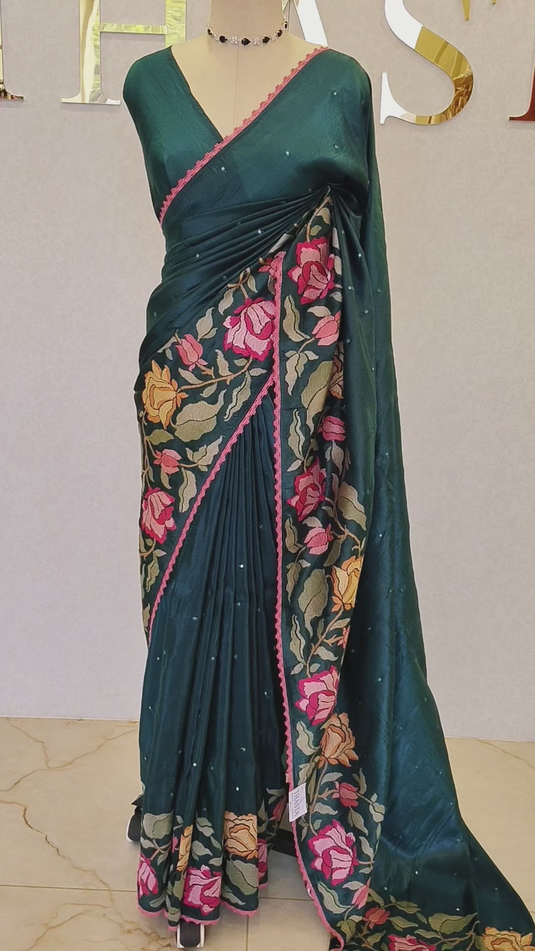 Crush Organza Saree In Peacock Green Color With Mirror Work Coming With Blouse Piece Which Have Lace Work.